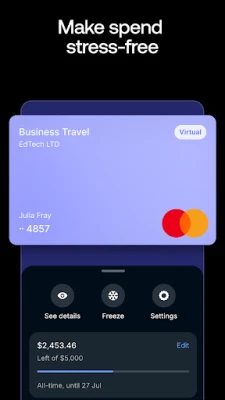 Issue physical and virtual cards to your team anywhere in the world, and stay on top of your finances with spend limits and custom approval flows.