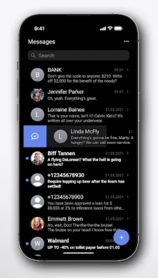 Fast SMS messenger with iOS 16 style interface. Free and no ads. Supports work with two SIM cards.