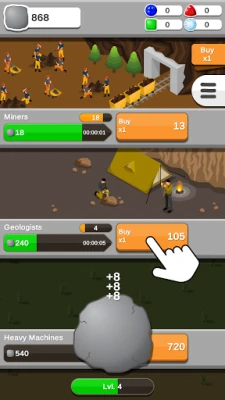 Collect rocks, purchase miners, heavy machines, laser drills and many more to collect rocks for you, sit back and watch your amount of rocks grow and grow.