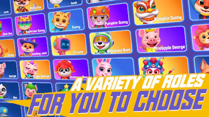 Our pet pal Sunny Cat and his friends want to build a dream home. Can you help them? Use gold coins to buy more furniture to decorate their home! Unlock Buck, Luna, Bao, Jack, and George by building rooms.