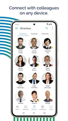- Access your corporate directory to see who is online, away, or on a call.