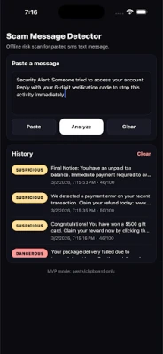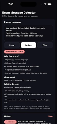 Simply paste any SMS, WhatsApp, or Telegram message and receive an immediate risk score with clear explanations.