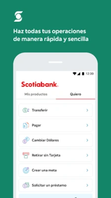 • Envía o retira efectivo en cajeros Scotiabank sin usar tarjeta.