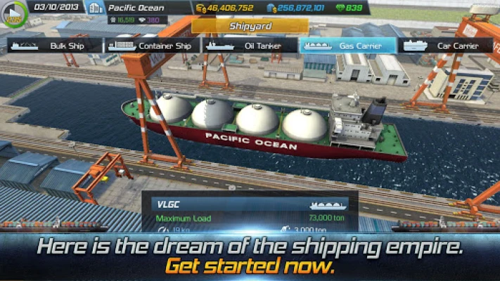 When you first start your game, your company starts with a tiny bulk ship, but depending on your management skills and efforts, your company can turn into a global shipping company with huge fleet of vessels