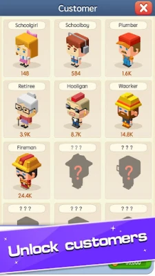 3. Unlock more kinds of shops and customers.