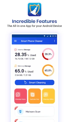 Smart Phone Cleaner is a feature-rich cleaner app for Android users it helps you in reclaiming storage space on your Android device by cleaning junk and removing obsolete or residual files.