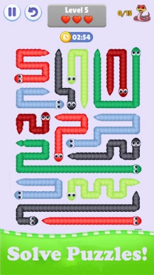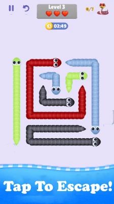 Snakes are trapped in tangled gridlocks. Your mission in Snake Escape is simple: untangle the snakes, clear the maze, and guide every snake to escape.