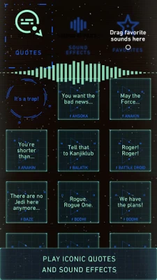 Play classic sound clips and sound effects from your favorite Star Wars characters, creatures, weapons, vehicles, and scenes