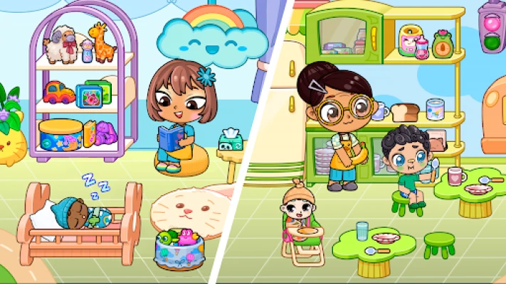 • STORY-DRIVEN GAMEPLAY: Create your own narratives in our role playing games - dress and doll story, baby care, school life.
