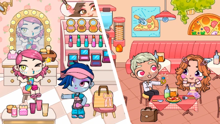 • IMMERSIVE WORLD: Explore different locations in this virtual city — hair & makeup salon, school, dream house, pizza café, and more..
