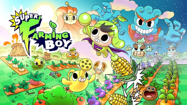 In Super Farming Boy™, you play as Super, whose mom and friends have been captured by your evil nemesis, KORPO®©TM, who unlawfully hires you to work on your own land, taxing all proceeds for himself! Now, with your friends and mom up for sale, you must harvest your way through challenging adventures, saving enough to buy your mom and friends back!