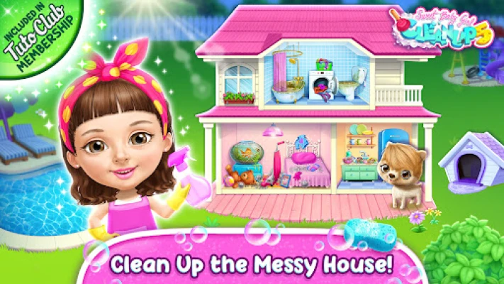 Play house makeover and messy playground cleaning game for kids! Help sweet baby girl clean up & fix her messy house. Clean up the kitchen, tidy up the stinky toilet, wash the dishes, fix and design your dream playground. Feed and dress up your new pet - a little cute kitty. There are so many options for treats and makeovers! Get new toys for summer, baby house decorations and play baby girl dress up game!