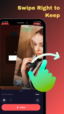 • Swipe left to delete, swipe right to keep — instant, one-handed control