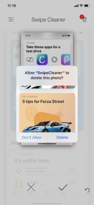 Clean your iOS device gallery with an ease of a swipe. Use a simple gesture of swipe to delete or keep photos stored in your camera roll.