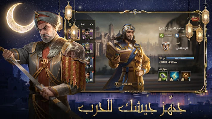 لعبة متعددة اللاعبين تبني فيها مملكتك وتجمع مواردك. كن من سلاطين وملوك الحرب، اختر استراتيجية قتال واحشد حلفائك وقد جيوشك مع صلاح الدين الأيوبي واحكم المملكة ليسطر اسمك اللعبة إلى الأبد.