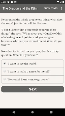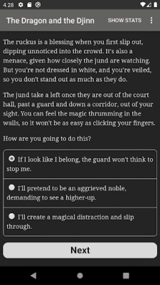 "The Dragon and the Djinn" is a 710,000 word interactive Arab epic fantasy novel by Athar Fikry, where your choices control the story. It's entirely text-based—without graphics or sound effects—and fueled by the vast, unstoppable power of your imagination.