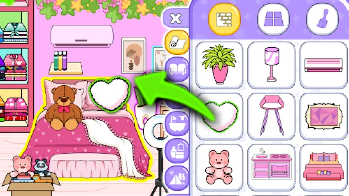 Experiment with layouts, play with pink home design textures and discover the joy of mixing and matching luxury furniture styles. Your pink world's dream home decoration can range from a chic minimalist haven to an extravagant pink mansion filled with luxury and charm. Each item you choose adds character to your pink world, making every room an extension of your imagination.