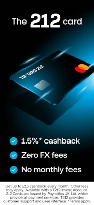 - Trading 212 Card - experience revolutionary low exchange rates and get 1% cashback;