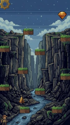 The player controls the explorer. By clicking on the screen and dragging the explorer, the explorer can jump and move. While avoiding sharp spikes, the explorer can gradually jump onto platforms to obtain gems. The player needs to collect the gems without being attacked by sharp spike traps and win the game.