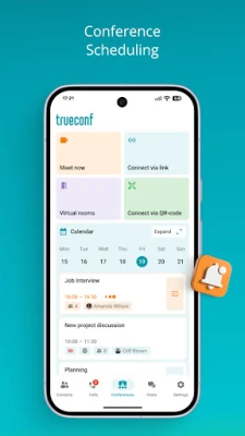 • Meeting scheduling. Schedule conferences and send invitations automatically when connected to TrueConf Server.