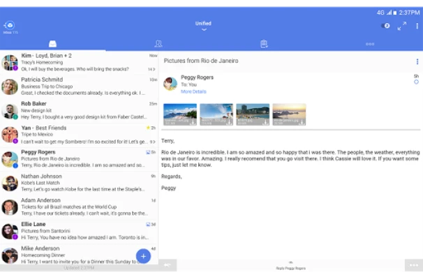 Supporting IMAP, POP3 as well as Exchange protocols. Type App automatically configures them once you sign in. View & sync all your email accounts from one Unified Inbox, while enjoying lightning fast true push email.