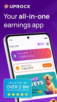 UpRock lets you earn rewards by participating in optional activities like playing games, answering surveys, uploading shopping receipts, and more. Some rewards are earned by completing offers, while others are earned passively when the app is running. You always choose when to participate, and you can start or stop at any time.