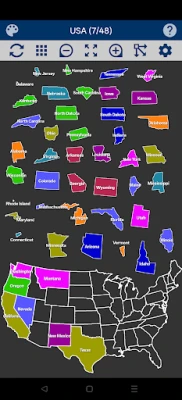 An entertaining and educational map puzzle of United States of America. The 48 US States (excluding Alaska & Hawaii) form the Jigsaw puzzle pieces. Play with or without state outline.