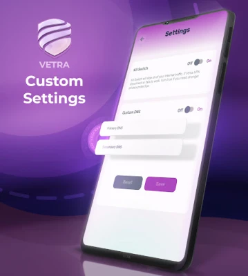 For users who demand more control, Vetra VPN enables you to set custom DNS configurations directly in the app.