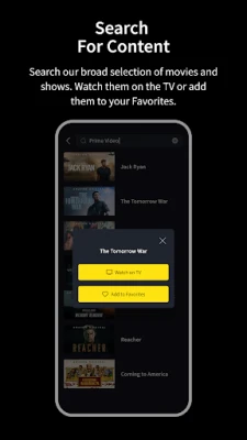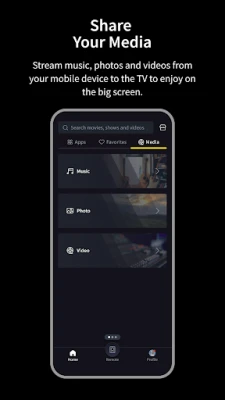 It provides all of the functions of your TV remote and more. Key Features: - Power On / Off - Volume Control - Change Channel - Share Video / Music / Photo to TV - Search VoD