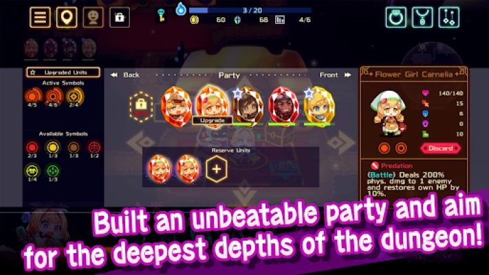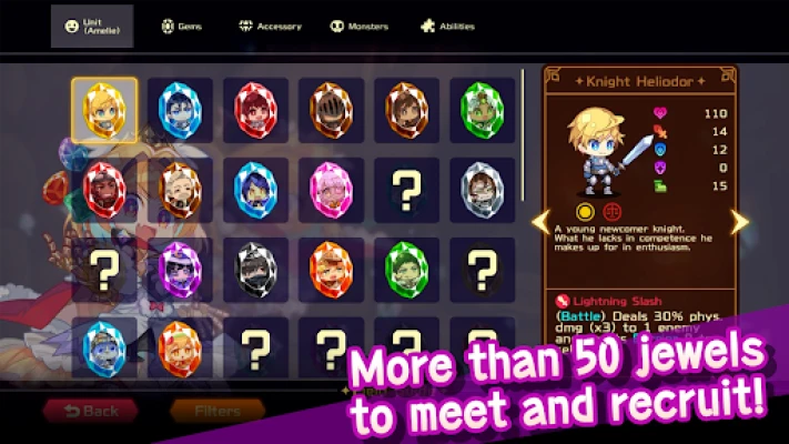 Collect the jewels (units) located throughout the dungeon and add them to your party. Acquire duplicates of the same jewel to upgrade their stats!