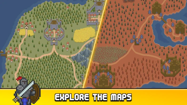 Switch between different kingdoms and go on an adventure scrolling through the medieval pixel environments. Enjoy the retro / arcade pixel style and conquer enemy cities to be the defender of your kingdom.
