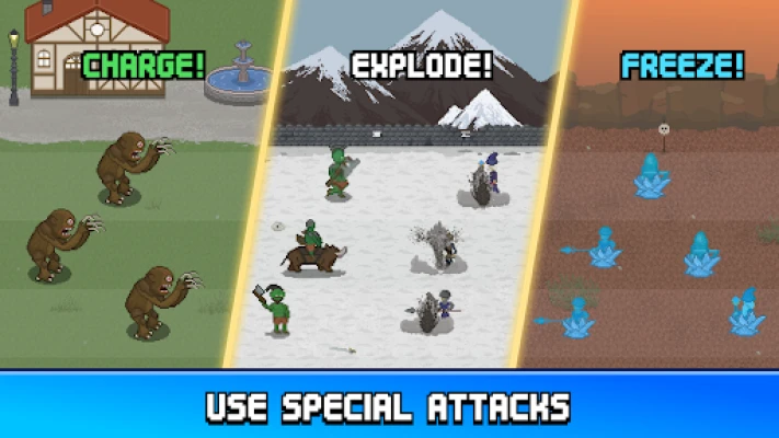 Unlock units across the Human, Orc and Elven kingdom. Recruit different unit types to diversify your pixel army legion