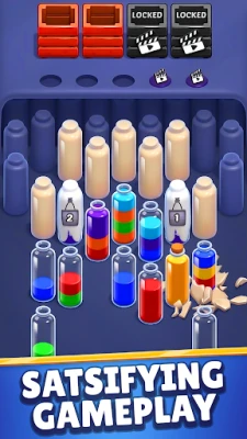 Your goal is to sort the colors so that each bottle contains only one color. But here's the twist—many bottles are sealed in dirt and can't be touched. To unlock them, you’ll need to collect fully sorted bottles, which then break the surrounding dirt and open up new possibilities. Every move counts, and every completed bottle creates new chances to strategize.