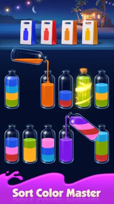 Enjoy creative water sort challenges featuring hidden colors, blind bags, and bottles in different shapes. As you progress, levels become more complex, delivering endless fun.