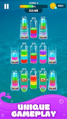 ✅ Difficulty Design: The initial levels are easy and accessible, with more bottles and color variations added as you progress.