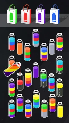 Water SortPuz 3D spins the classic water pouring game into an engaging and meticulously crafted challenge. Players must use sharp logical reasoning to meticulously sort different colored waters into their respective bottles in this water color sort. The ultimate objective is to segregate liquids by color, making every bottle in the game hold a unique shade. As levels progress, the Water Sort puzzle grow increasingly intricate, requiring clever maneuvers and thoughtful planning to solve the Water Sort puzzle in this magic sort water sort puzzle.
