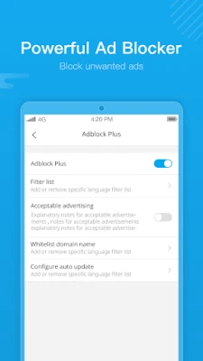 ● Ads Block: Integrated Ad Blocker to effectively block annoying ads, pop-ups, banners, as well as some specific JavaScript, to give you a comfortable browsing experience and make the page loading with a rapid speed, also reduce the internet data usage for users.