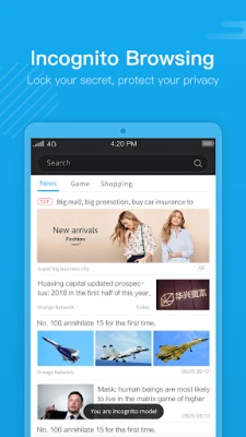 ● Private browsing: Set Incognito to use private tab to go anywhere on the Internet without leaving a trace on your device.