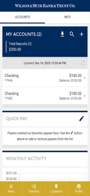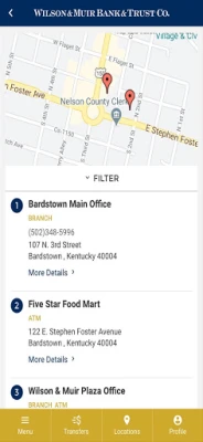 With the Wilson & Muir Mobile Banking app you can check your available balances, view transaction history, transfer funds between accounts, pay your bills, manage your bank debit cards, contact your local branch and find ATMs in your area. Your Finances. On The Go. Wilson & Muir Mobile Banking