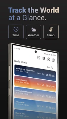 Coordinate across time zones effortlessly. World Clock helps remote teams, frequent travelers and global professionals track time, weather and contacts worldwide – with zero ads and zero tracking.