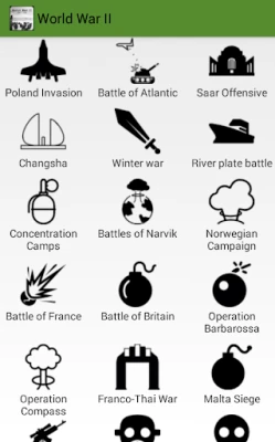 The aim is to explain the different events of the history ordered by the countries that took part on the battle, the different fronts opened during the war and the different battles.