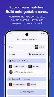 Design your own wrestling universe or download scenarios created by the community. Customize promotions, championships, shows, and rosters, then share your creations with players worldwide.