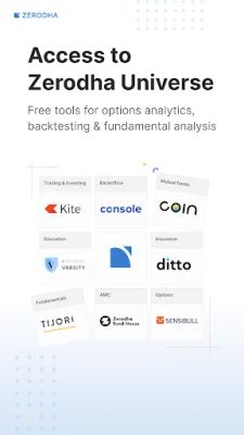 • Free access to Zerodha's ecosystem products like Sensibull, Tijori, Streak, and Quicko for trading and investing.