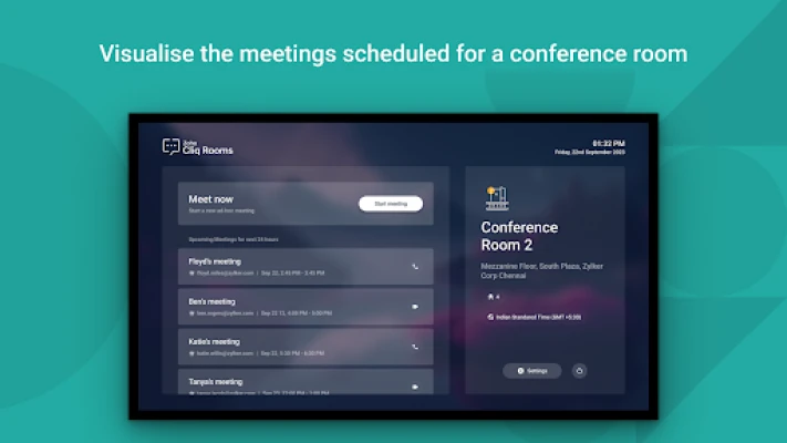 Evolve the conference rooms in your office into smart rooms with the Cliq Rooms for TV. Cliq Rooms, allows you to initiate and join, audio and video meetings from the conference room with an android tv. Use the big screen of your tv to effectively collaborate with upto 1000 colleagues that are working remote or in a different work location, right from your office conference room.