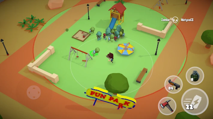 Survive in the apocalypse city, desert, forest, farm and military base. Use a wide variety of improvised items in a battle with zombies and players! Axes, pitchforks, construction tools, guns, grenades, chemical weapons, body armor, flying shoes, fast food, first-aid kits and much more! Grab whatever you want and try to survive among zombie and other hunters even offline!