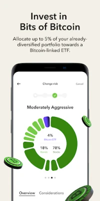 Your money is automatically invested into one of our diversified, ETF portfolios, built by experts and recommended for you. You can invest spare change each time you make a purchase with the Round-Ups® feature or set up automated recurring investments starting as low as $5.
