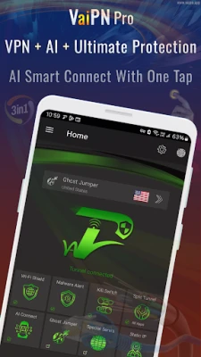 Vaipn Pro AI VPN is designed to support secure, encrypted connections across Wi‑Fi and mobile networks.