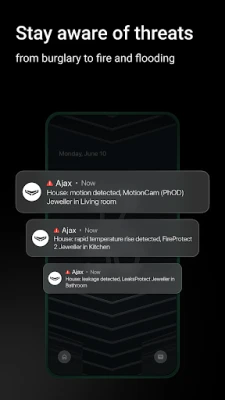 Ajax Security System keeps you informed about what's happening at your space. Monitor Ajax system status, receive instant alerts, and manage security, video surveillance, and automation through a single intuitive interface. The app is available for Android OS smartphones, Wear OS smartwatches, and Android TV devices.