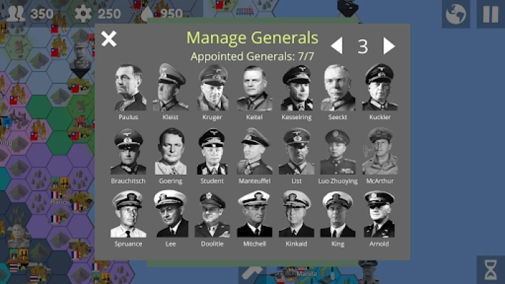 Hundreds of generals - with more coming by each update - from various countries around the world. Generals are not tied to specific units; they can be sacked from a unit on the spot and be replaced at any time. A general can also command multiple units based on their command size.