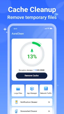Main Functions: Cache Cleaner: Clears app and system cache to release storage. Large File Cleaner: Finds and lists large files sorted by size. App Manager: Allows for batch uninstallation of applications.